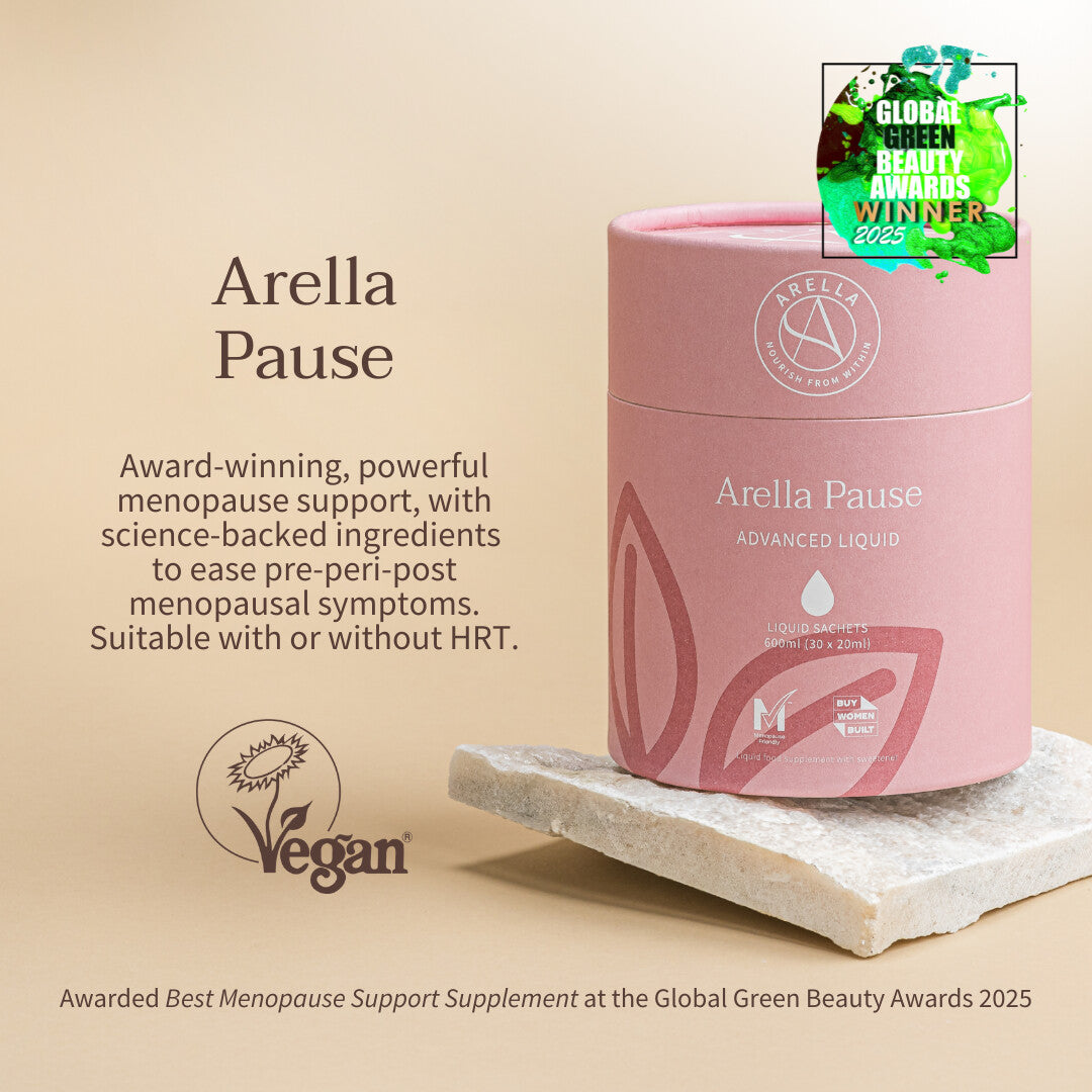 Arella Pause is the UK’s first single-serve liquid menopause supplement, designed to support women before, during, and after menopause.