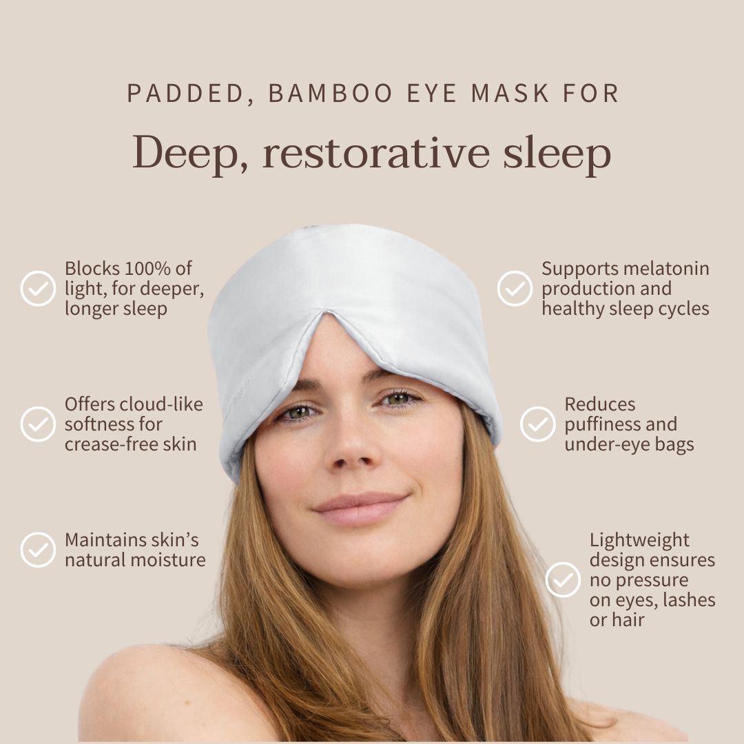 Our super-soft bamboo eye mask is designed to block out light and support deep, restorative sleep, whether you are at home, travelling, or winding down after a long day.