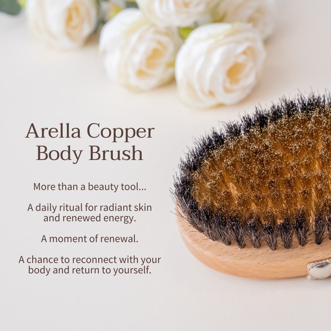 Arella's Copper Body Brush has been thoughtfully created to bring your body and mind back into harmony through the simple act of touch.