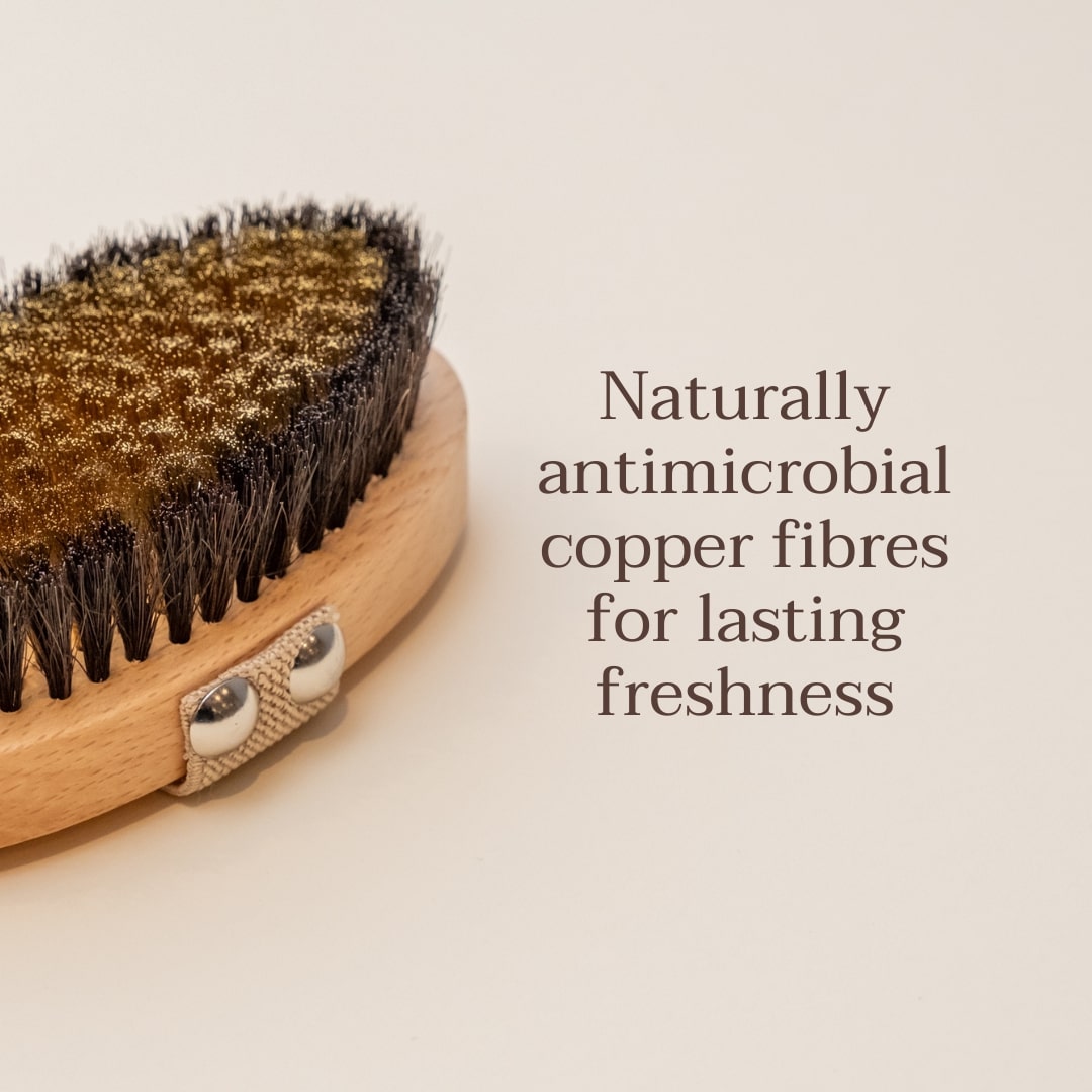 When woven into a body brush, copper fibres do more than simply exfoliate the skin – they help to awaken and revitalise the body on a deeper level.
