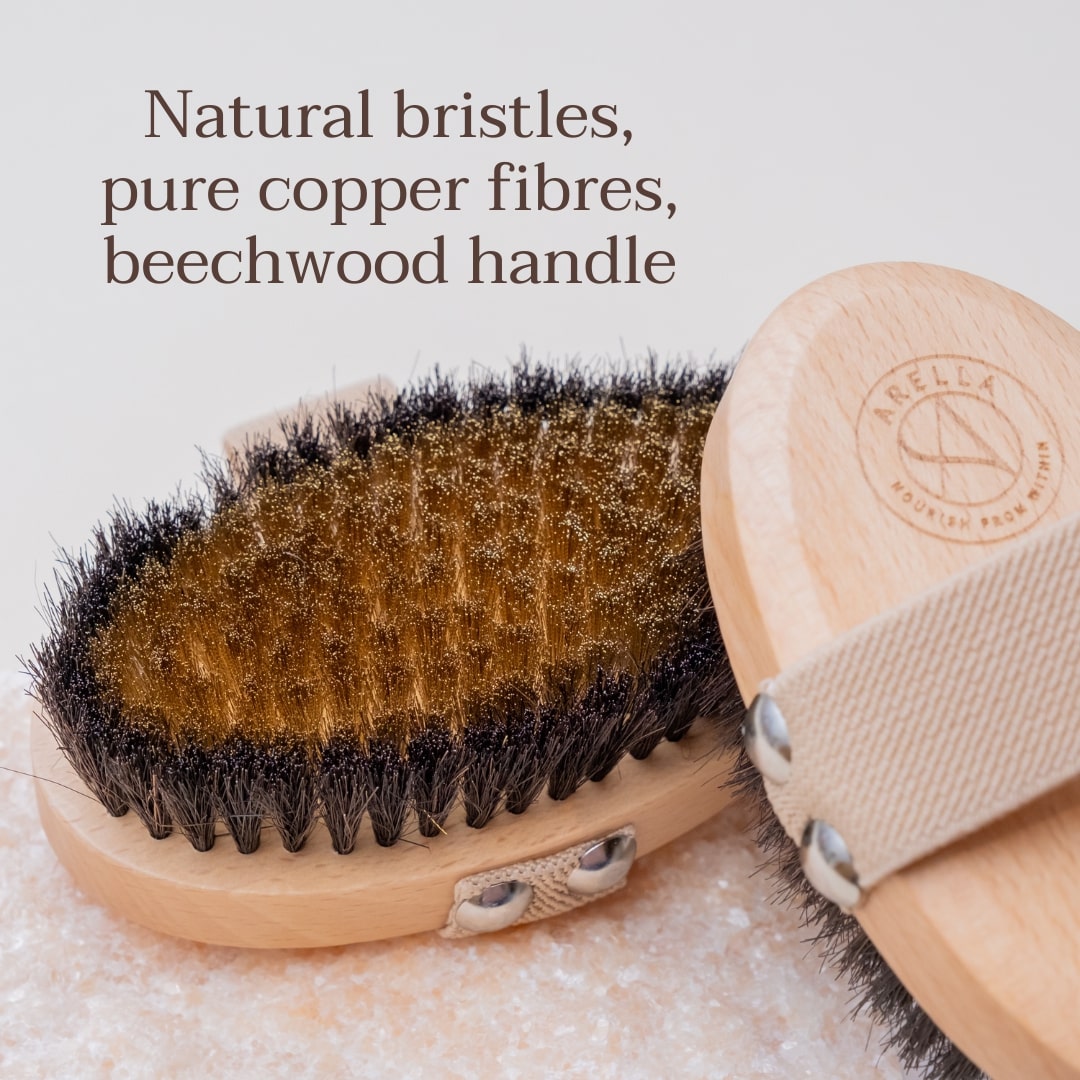 Unlike a regular body brush made only with natural bristles, a copper body brush offers a unique combination of physical and energetic benefits.