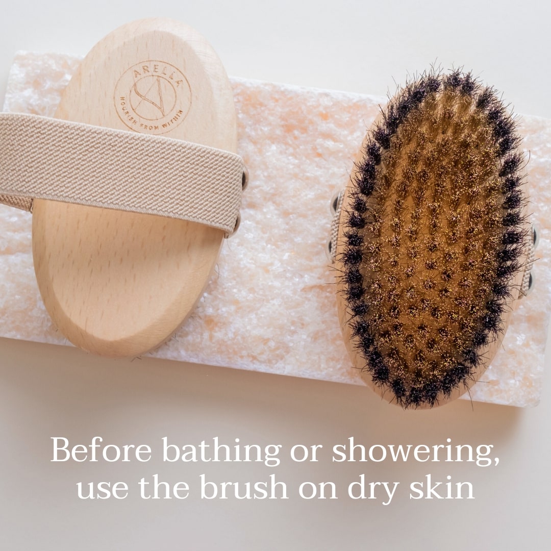 Before showering, use the brush on dry skin in long, sweeping movements toward the heart.